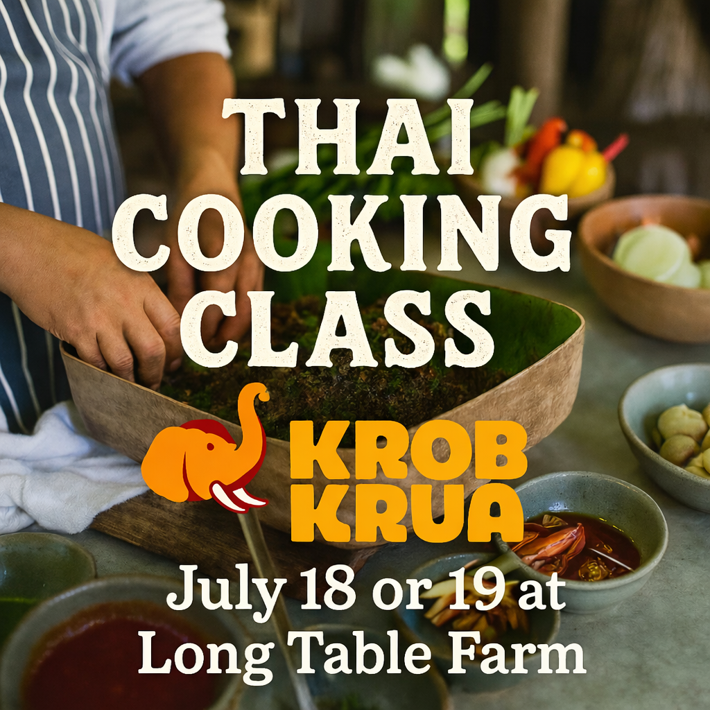 Join Chef Jeff and Sujita of Krob Krua for an exciting, hands-on Thai cooking class at the farm! In this immersive experience, you’ll learn to prepare authentic Thai dishes, including Som Tam (Papaya Salad), Salmon Panang Curry, and Vegan Spring Rolls with Plum Sauce. Whether you’re a beginner in the kitchen or a seasoned cook, this class offers something for everyone looking to explore the bold, vibrant flavors of Thai cuisine.